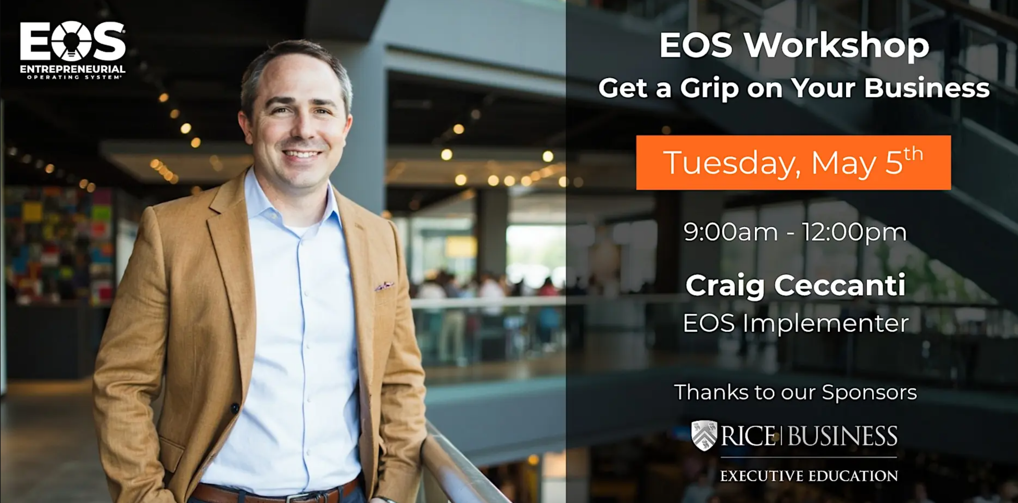 As a valued workshop attendee, you’re invited to enjoy exclusive savings on Rice Business Executive Education’s self-paced online courses. Receive 10% off Small Business Entrepreneurship: Starting a Business or Marketing a Business, or maximize your learning with 20% off when enrolling in both. Craig Ceccanti, your workshop lead, is also one of the instructors for these courses—bringing his expertise directly from the classroom to your continued learning.
