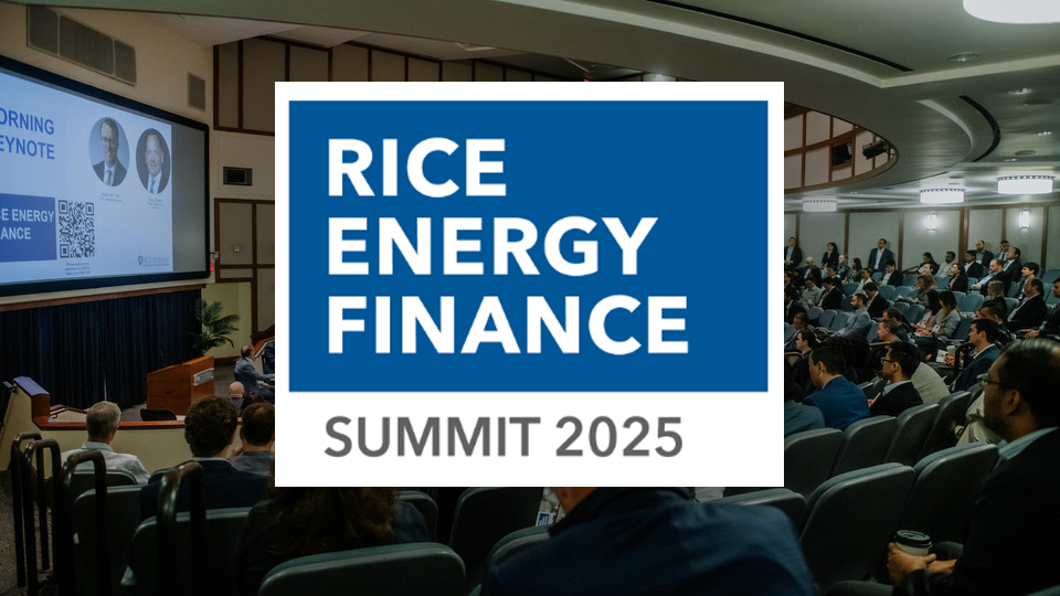 The 17th annual Rice Energy Finance Summit will be held on Friday, November 14, 2025 at Rice University in Houston, TX. The conference explores the complexity of the energy value chain, the funding for the energy transition, the maintenance of energy security, and emerging ideas in the global energy ecosystem.
