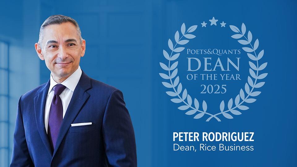 Peter Rodriguez, the Houston Endowment Dean of the Jones Graduate School of Business and the Virani Undergraduate School of Business at Rice University, has been named the 2025 Poets&Quants Dean of the Year, a national honor recognizing visionary leadership and outstanding contributions to business education.
