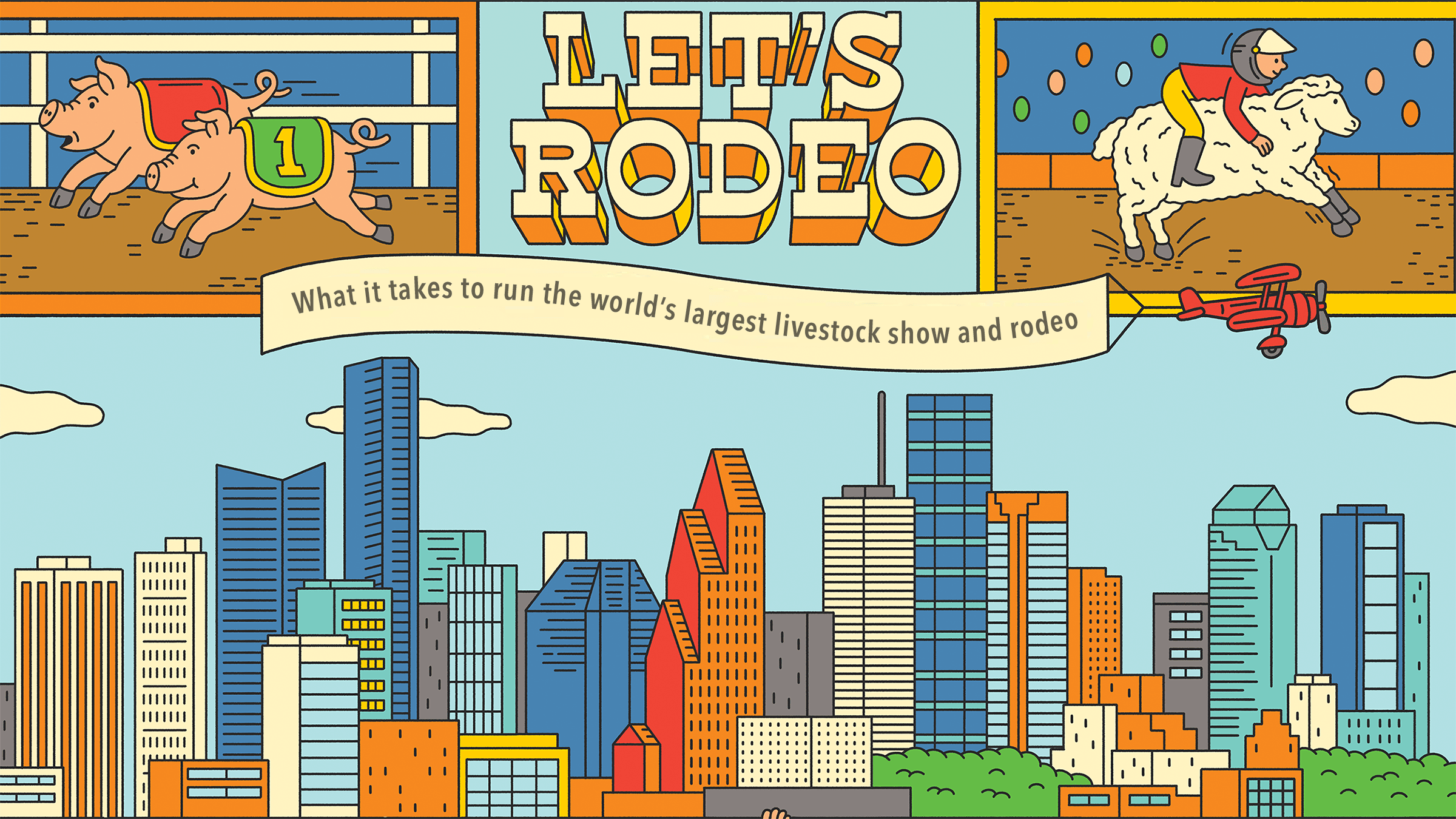 The annual Houston Livestock Show and Rodeo is the largest event of its kind in the world, and its scale is quickly apparent. Approaching the parking lots surrounding NRG Park, attendees to the nearly monthlong event see the tall Ferris wheels and amusement rides of a massive carnival. Inside the grounds, they’re immediately hit with smells of barbecue and fried delicacies. After climbing the winding entrance ramps, they can settle in to watch a full slate of boisterous competitions and vibrant concerts set on a football field-length dirt floor.